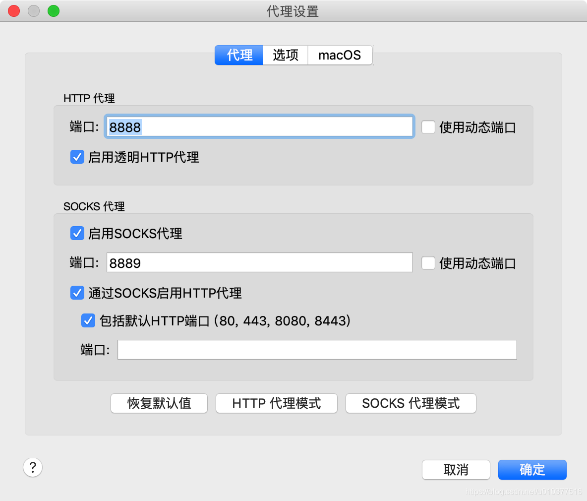SOCKS 代理 启用把端口设置为 8889